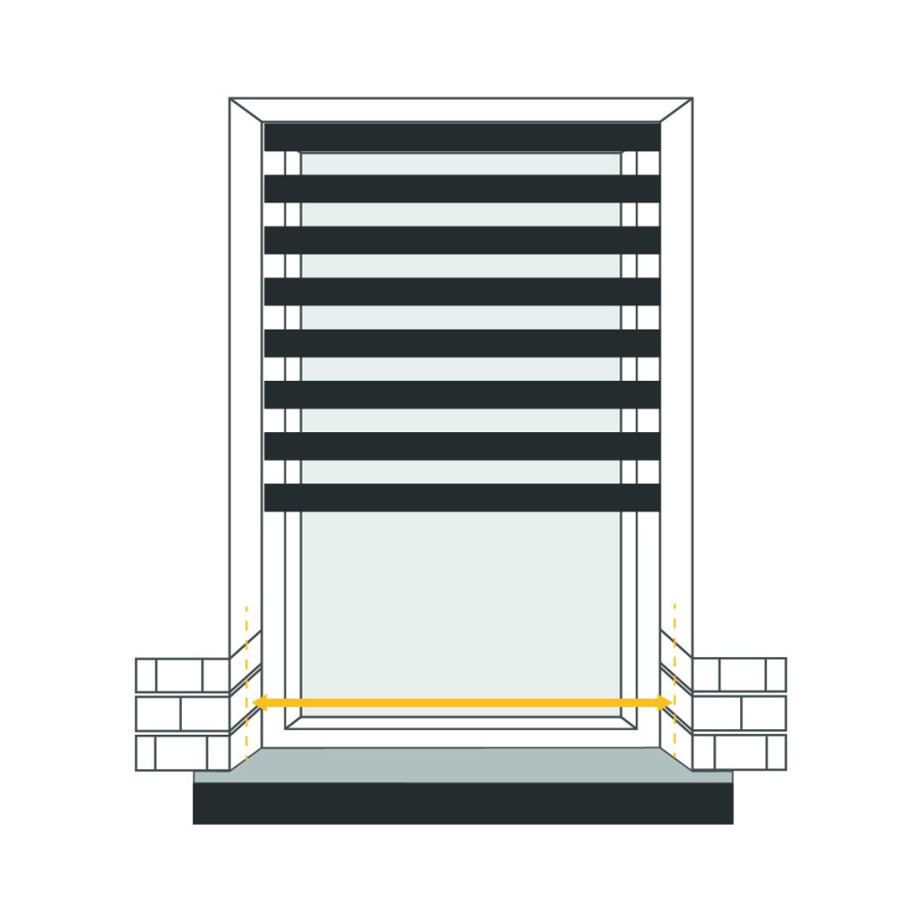 Take measurements of your window recess width at three positions: top, middle, and bottom, selecting the smallest measurement as your width.