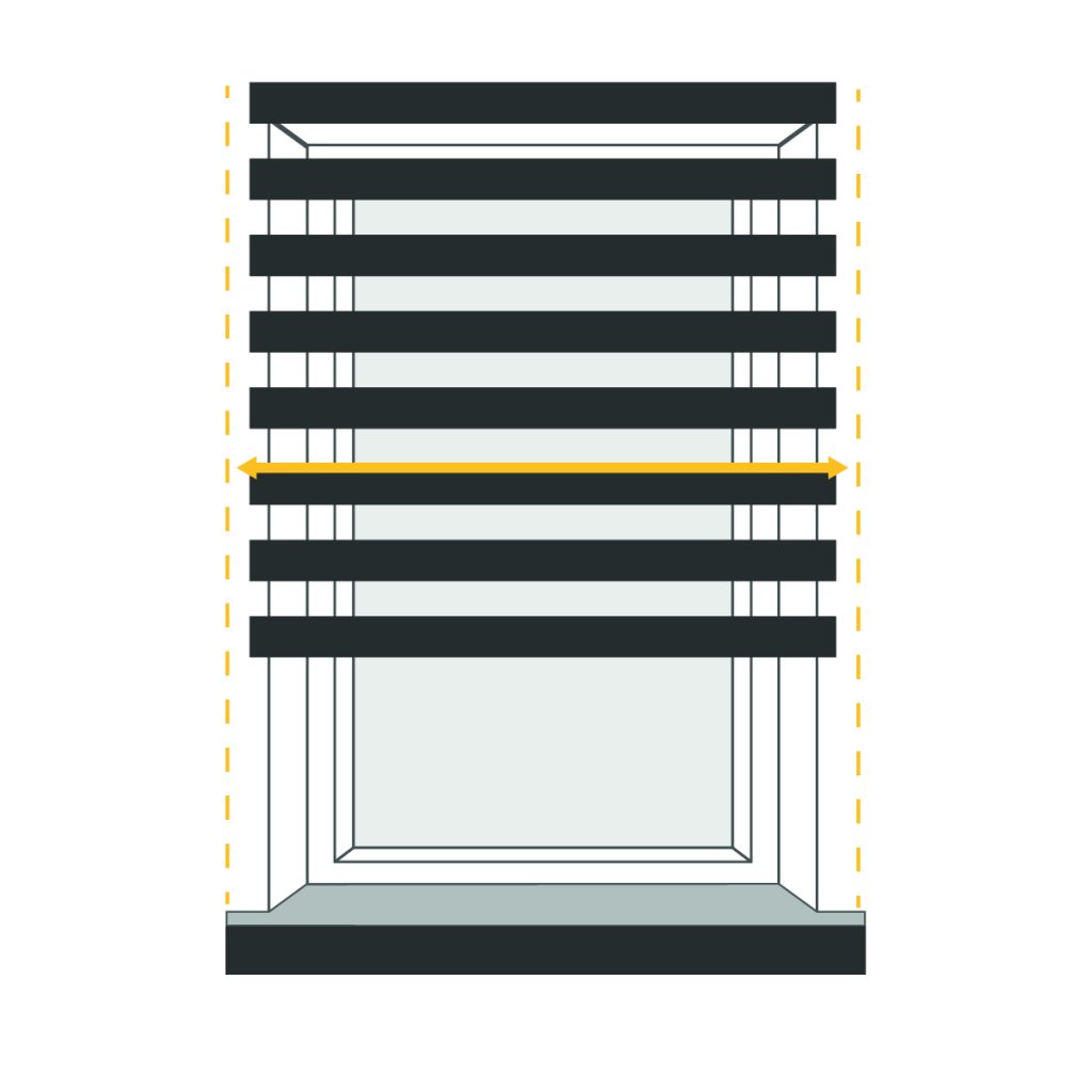 Determine the desired amount of overlap for your blind on both sides of the window recess, and measure this width accordingly. Keep in mind that due to the chain control and brackets, the fabric will be 35mm narrower than the specified size.