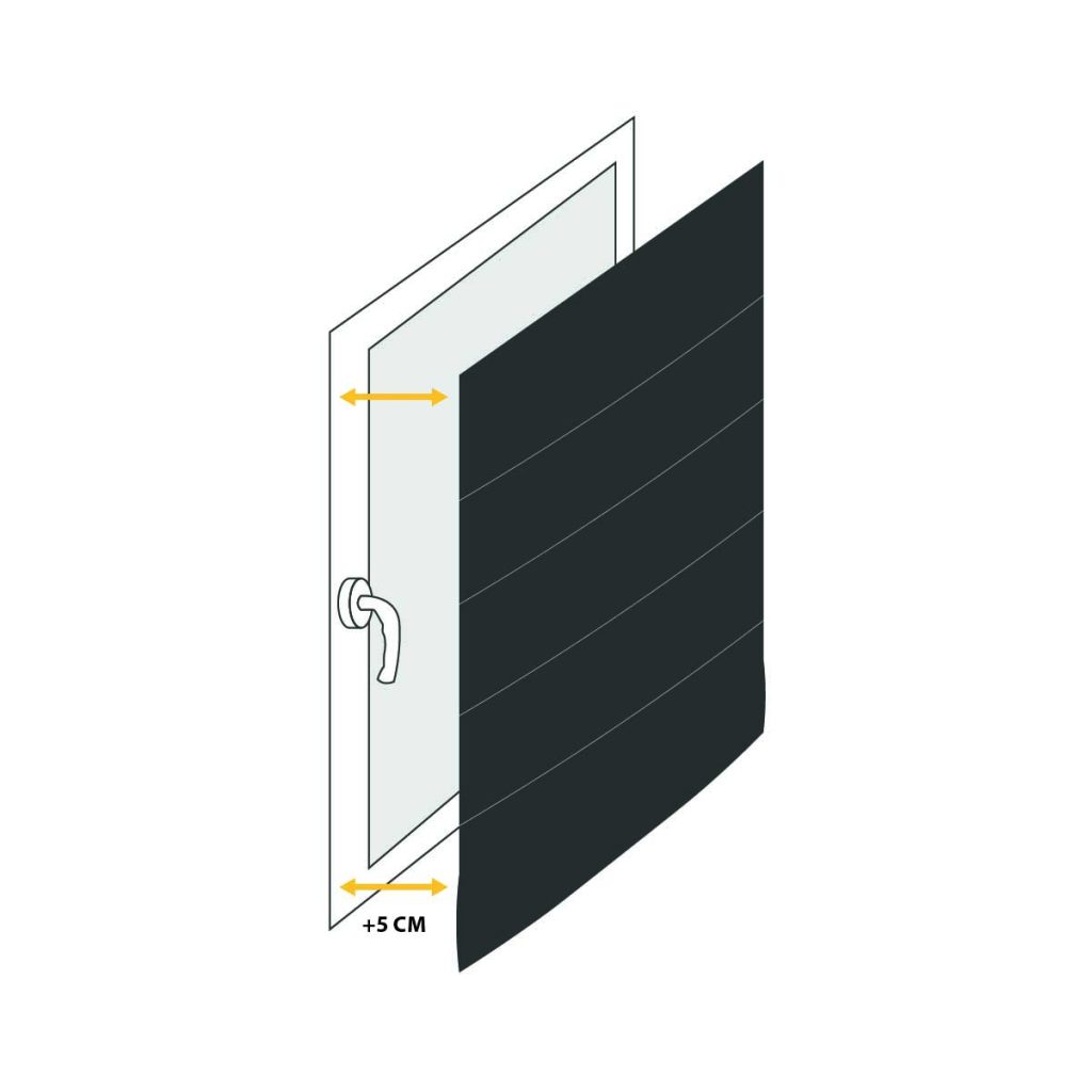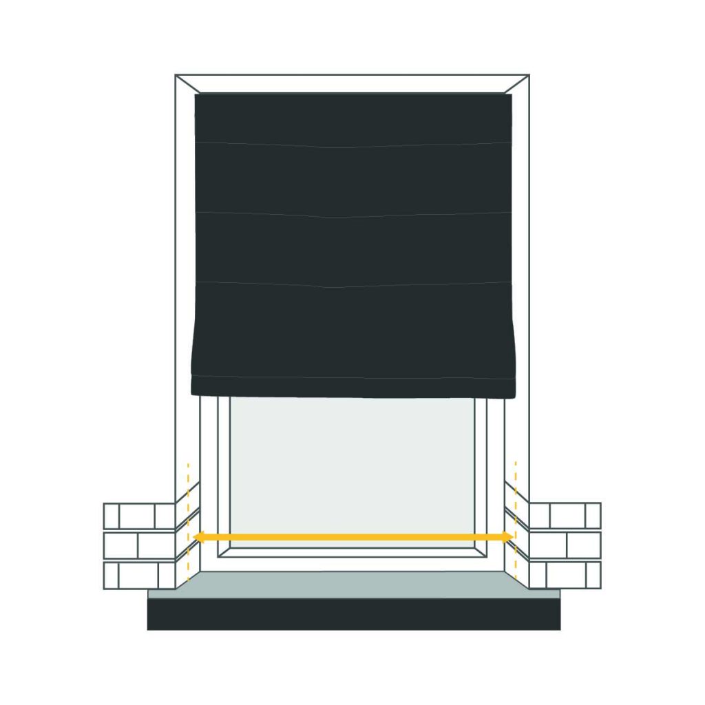 Determine the desired amount of overlap for your blind on both sides of the window recess, and measure this width accordingly. Keep in mind that due to the chain control and brackets, the fabric will be 35mm narrower than the specified size.